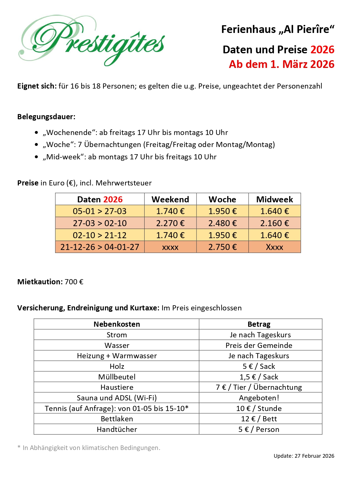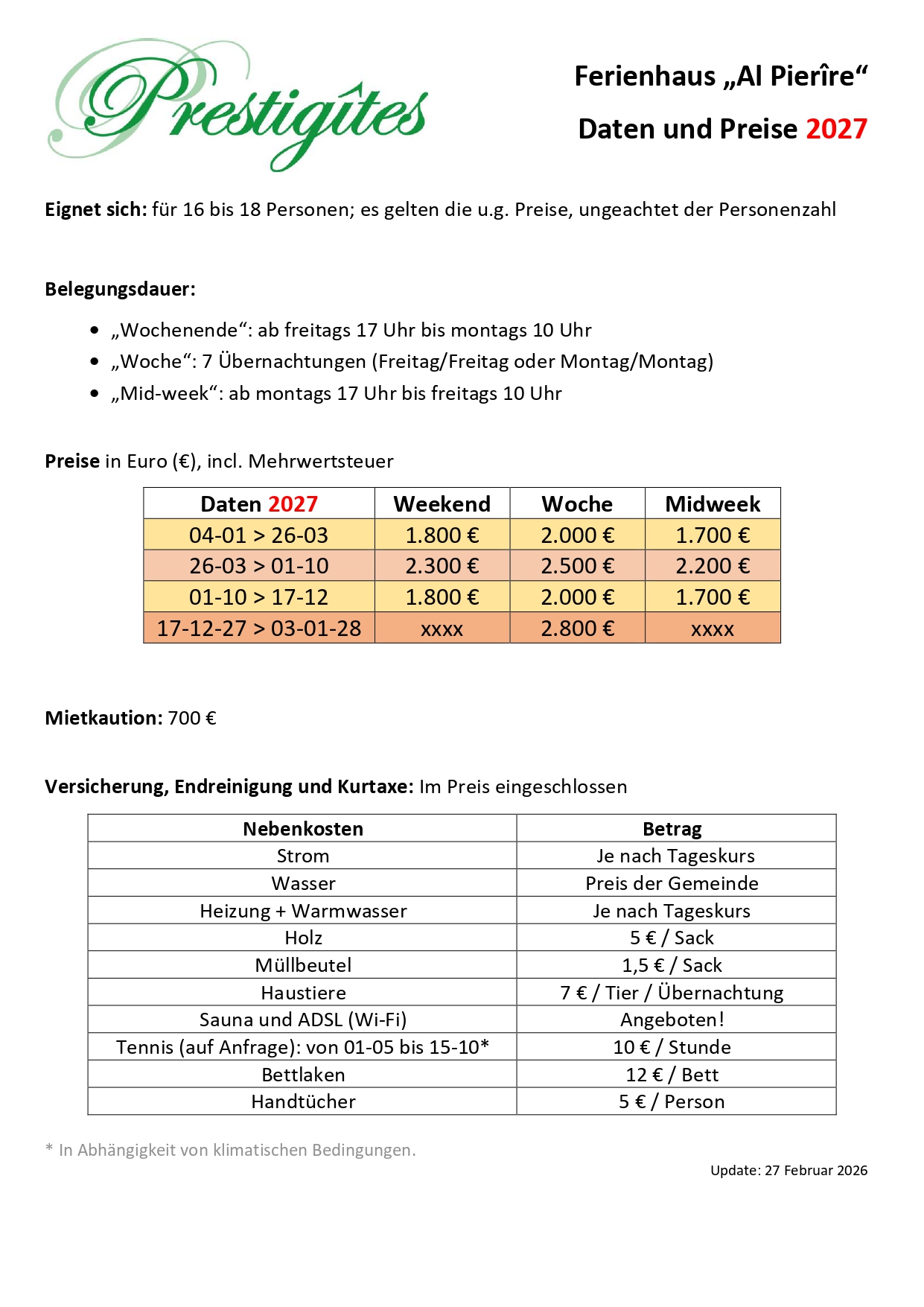 Preise und verfügbare Daten für Al Pierîre. Eine Frage?