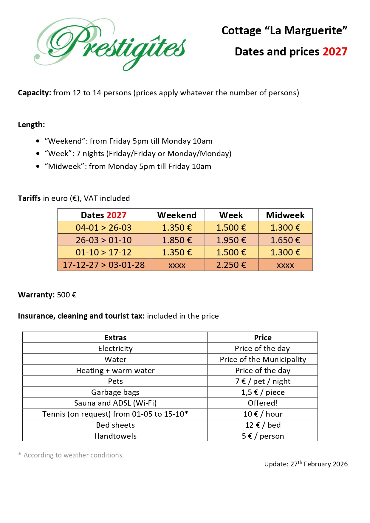 You find below the current prices and availability for your stay at La Marguerite.